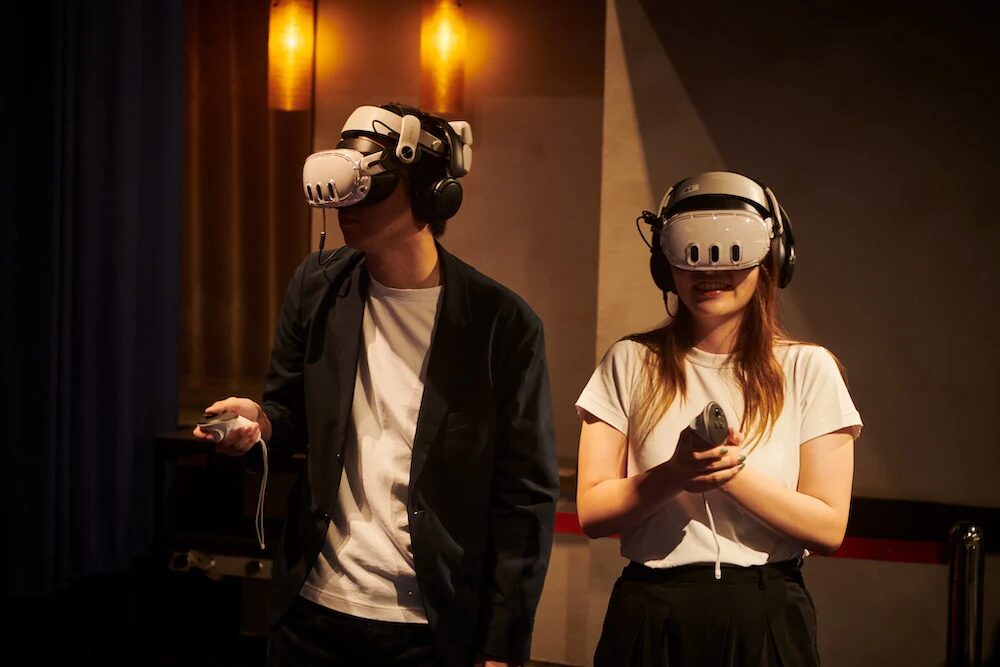 Tyffonium combines cinematic storytelling, VR technology, and physical sets to create fully immersive adventures. Participants wear VR headsets and walk through a carefully designed environment while interacting with the story.
